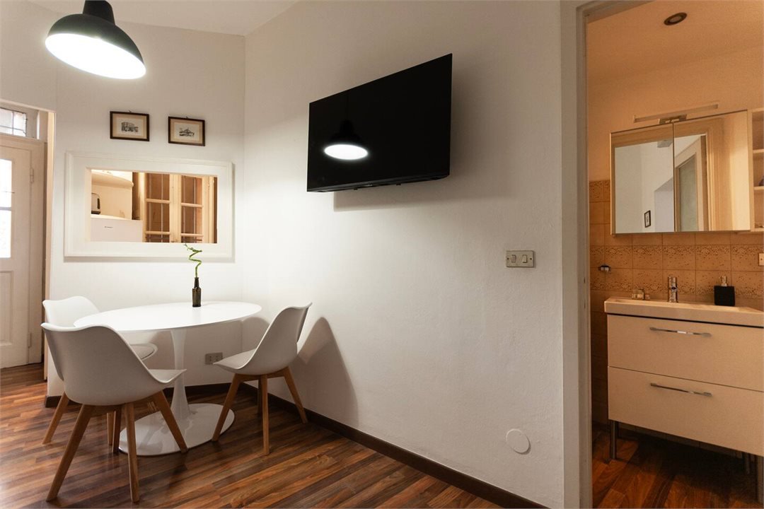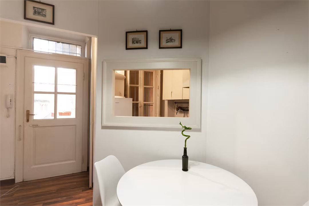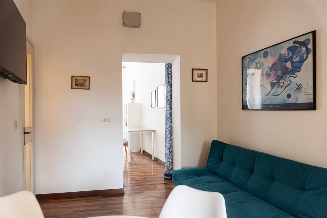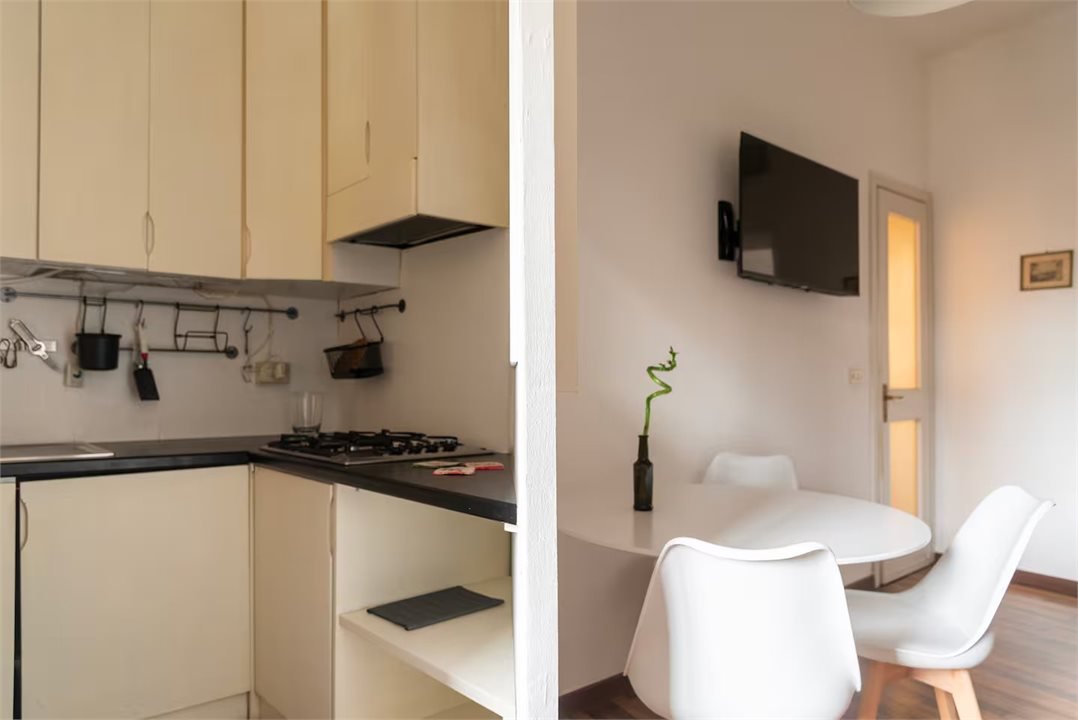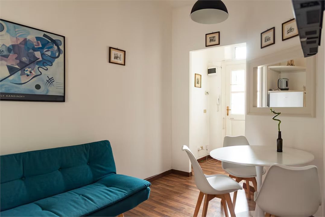 The apartment consists of a living area, kitchenette, bedroom with balcony overlooking the square and bathroom. The rooms are well proportioned, bright and furnished with sober taste. The distribution is functional and suitable for both residential use and as a high-end pied-à-terre.