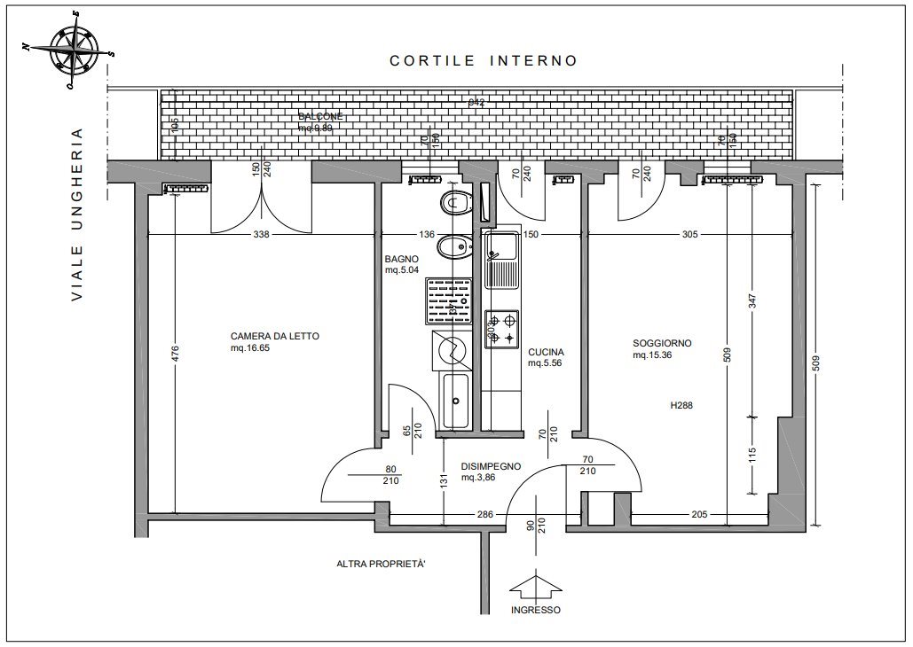 L'immobile, ampio luminoso, affaccia sul cortile interno, offrendo tranquillità e buona luminosità durante tutto l'arco della giornata.